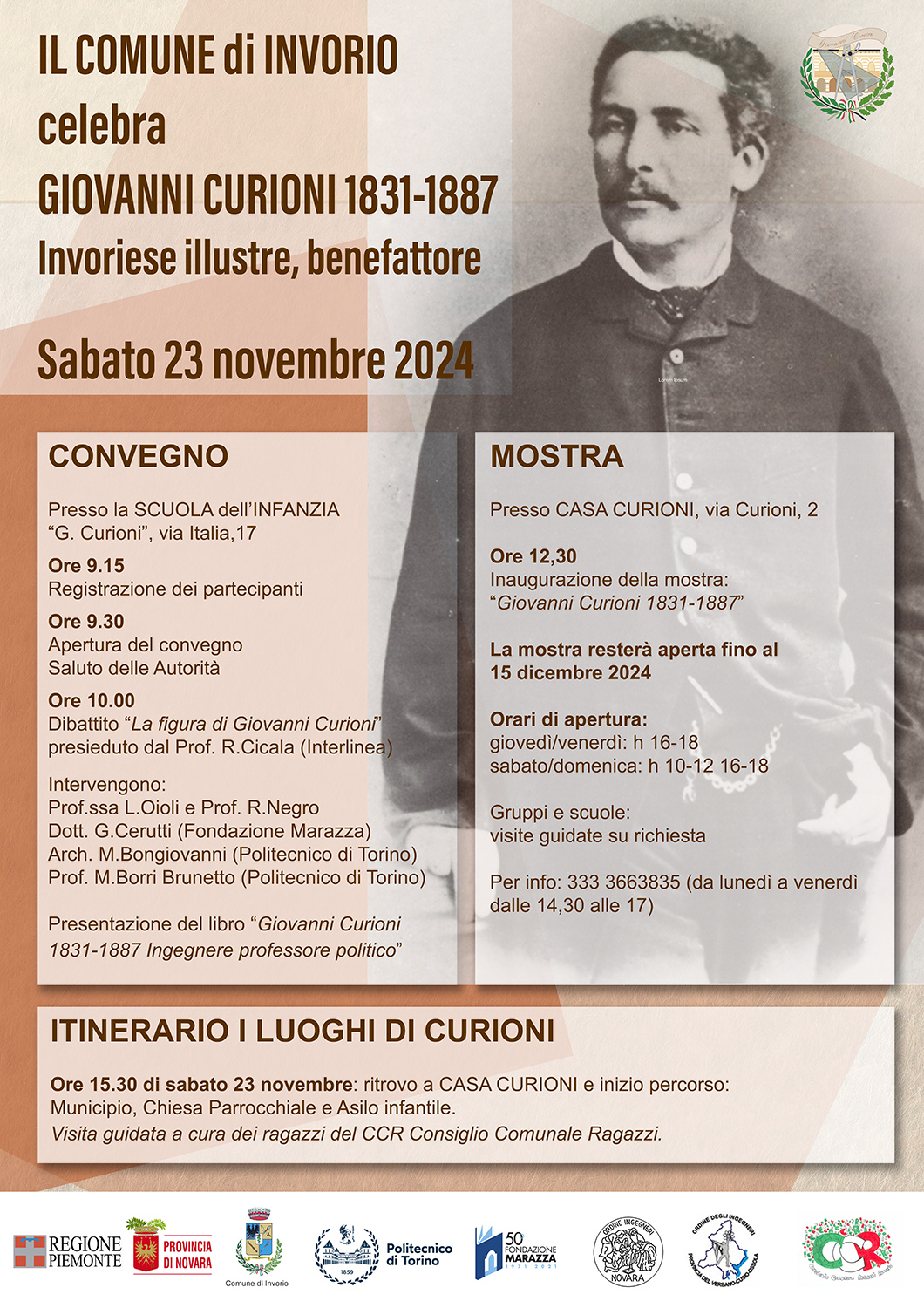 Sabato 23 Novembre 2024 Il Comune di Invorio celebra GIOVANNI CURIONI 1831-1887 Invoriese illustre, benefattore.