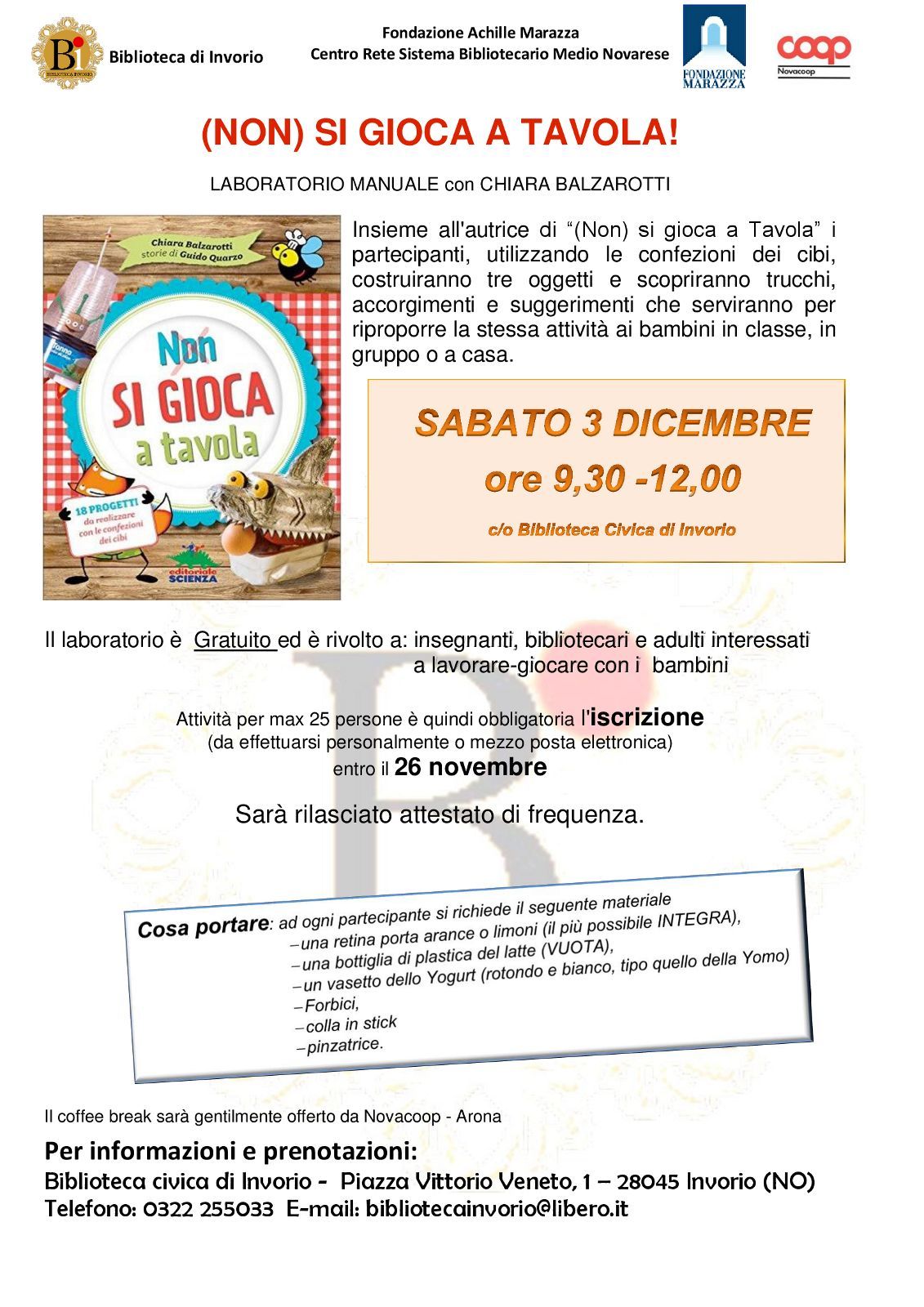 Attività max per 25 persone, quindi è necessaria la prenotazione entro il 26/11.