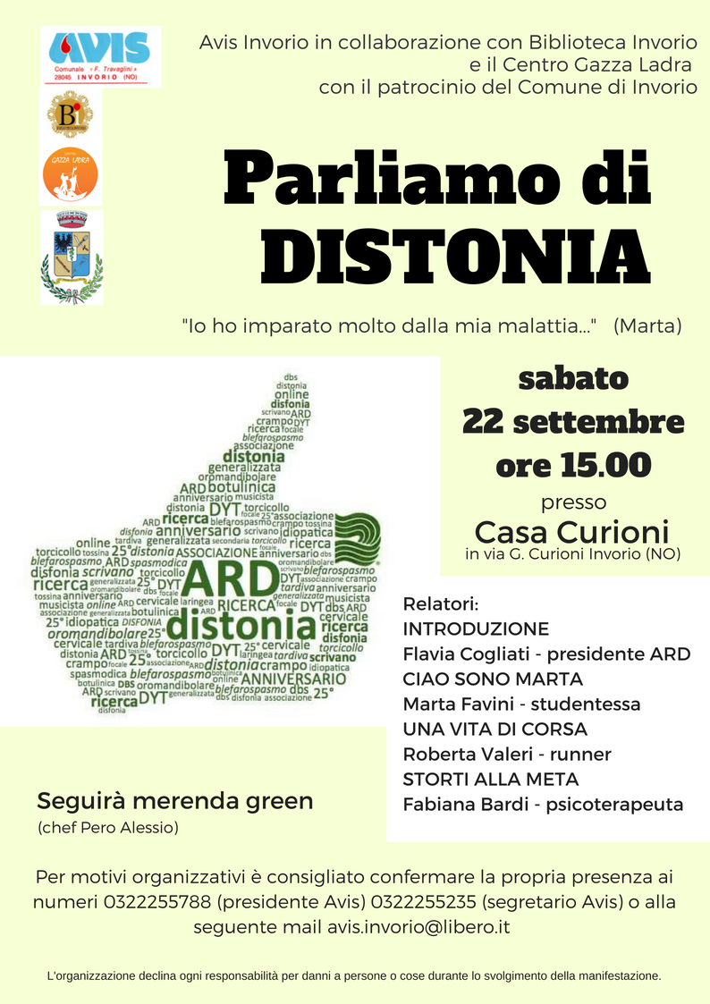 Parliamo di distonia: Casa Curioni, 22/09/2018.