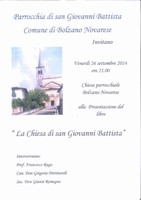 La Parrocchia di San Giovanni Battista e il Comune di Bolzano Novarese invitano i cittadini alla presentazione del libro "La Chiesa di S.Giovanni Battista".