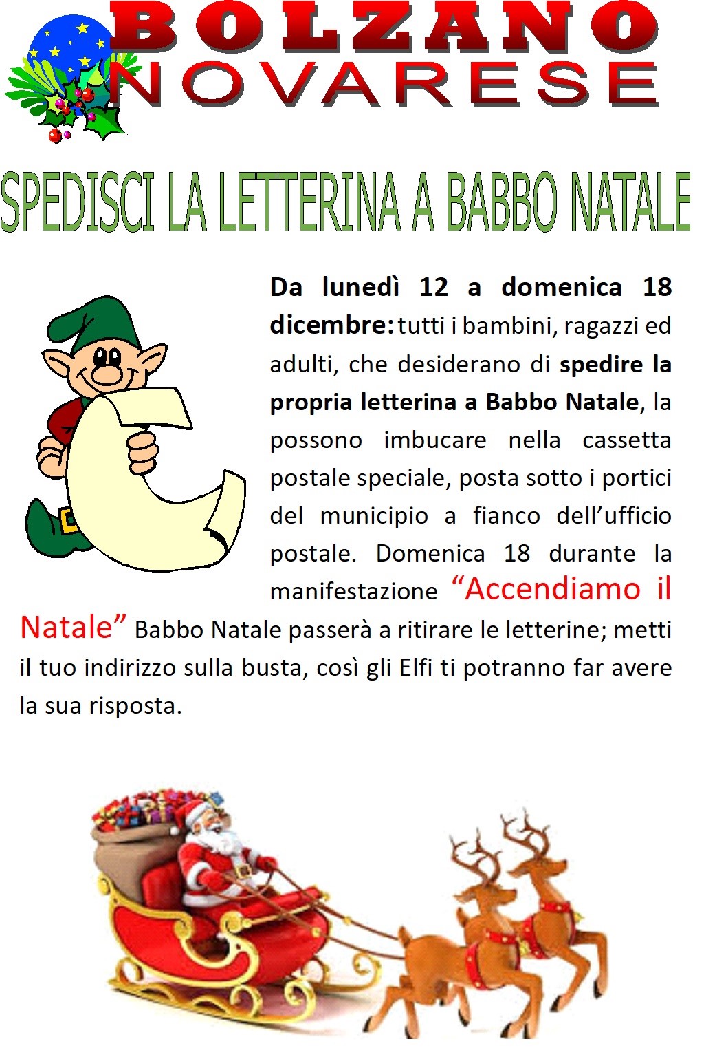 Da lunedì 12 a domenica 18 spedite le letterine a Babbo Natale