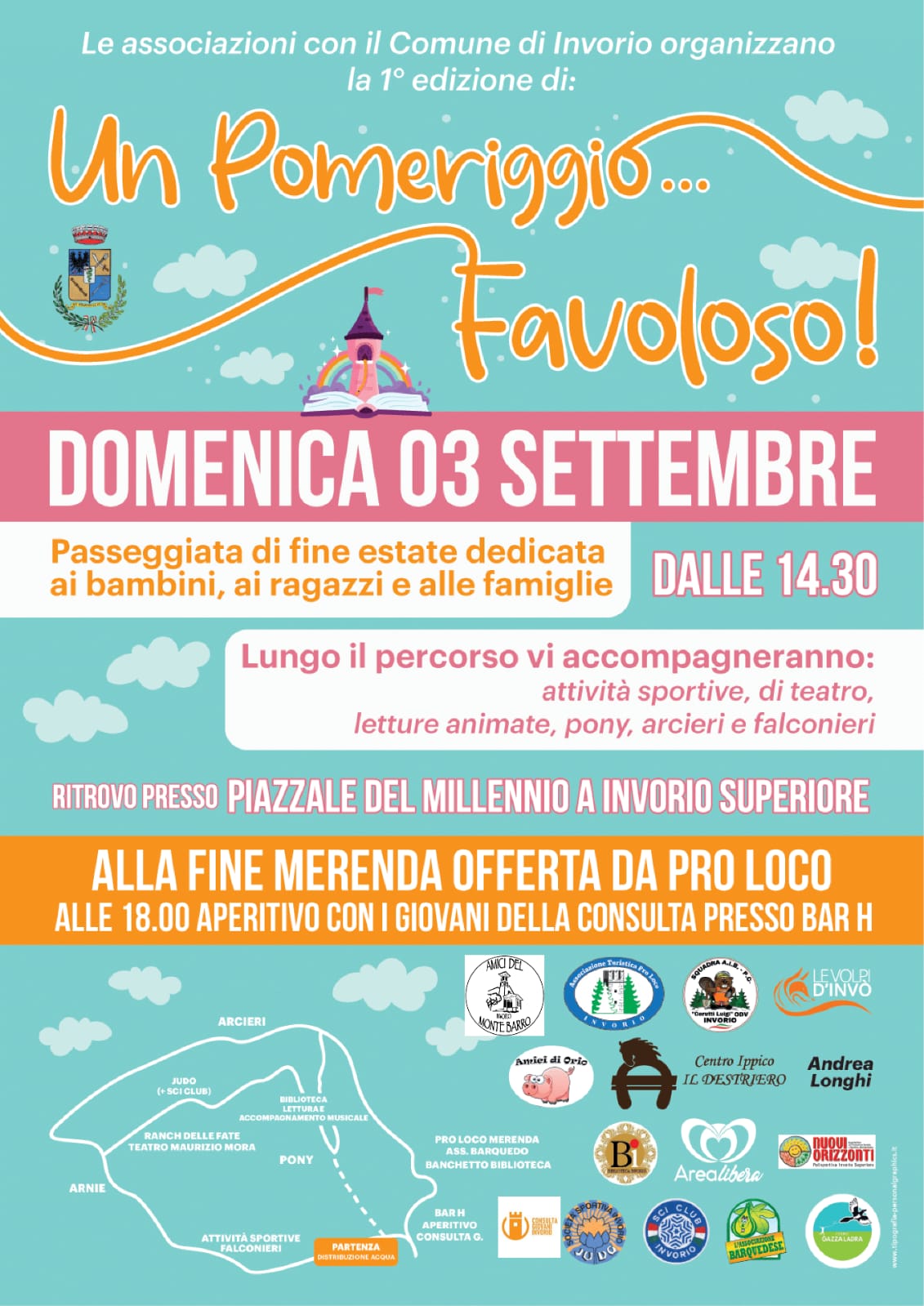 Le Associazioni con il Comune di Invorio vi aspettano, Domenica 3 settembre, per la prima edizione de "Un Pomeriggio.... Favoloso" passeggiata di fine estate dedicata a bambini, ragazzi e famiglie.
