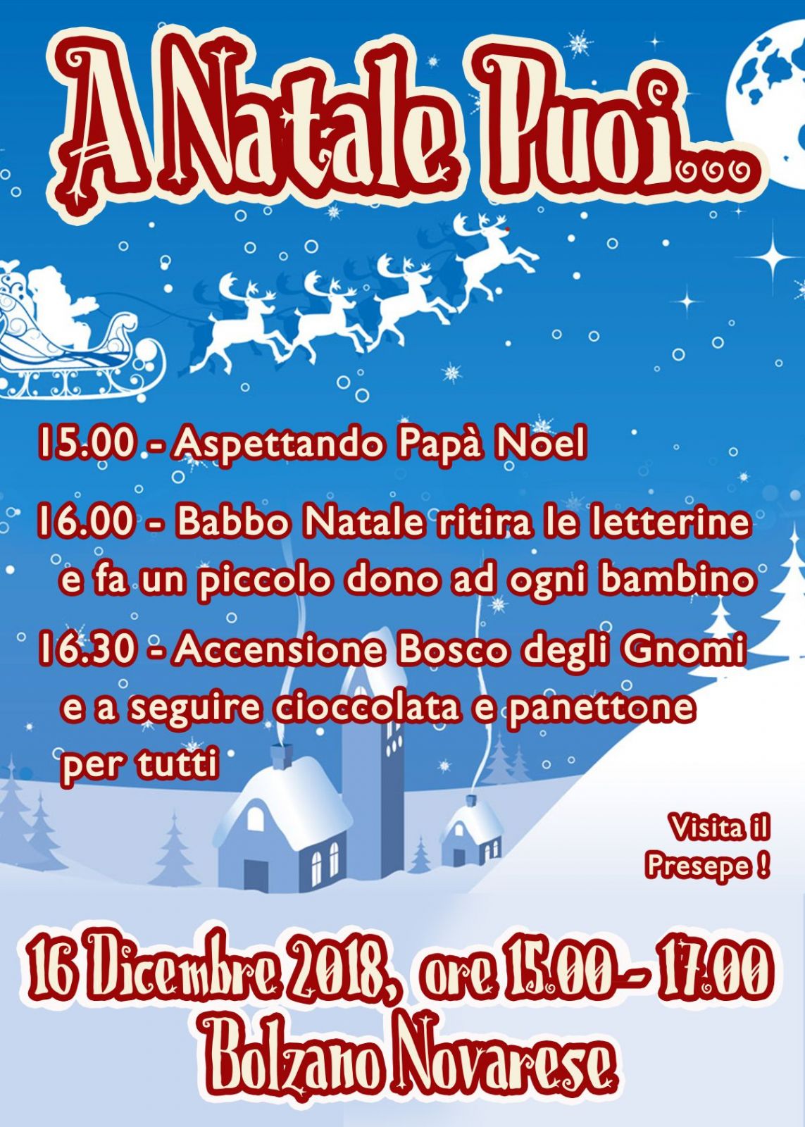 Anche quest'anno l'Amministrazione Comunale organizza un pomeriggio di festa nell'attesa del Natale, domenica 16 dicembre dalle ore 15 alle ore 17 in Piazza Cesare Battisti.