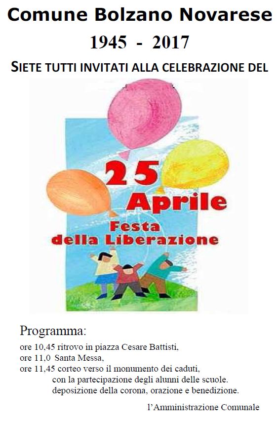 L'Amministrazione Comunale invita tutti i cittadini a celebrare la festa della Liberazione: