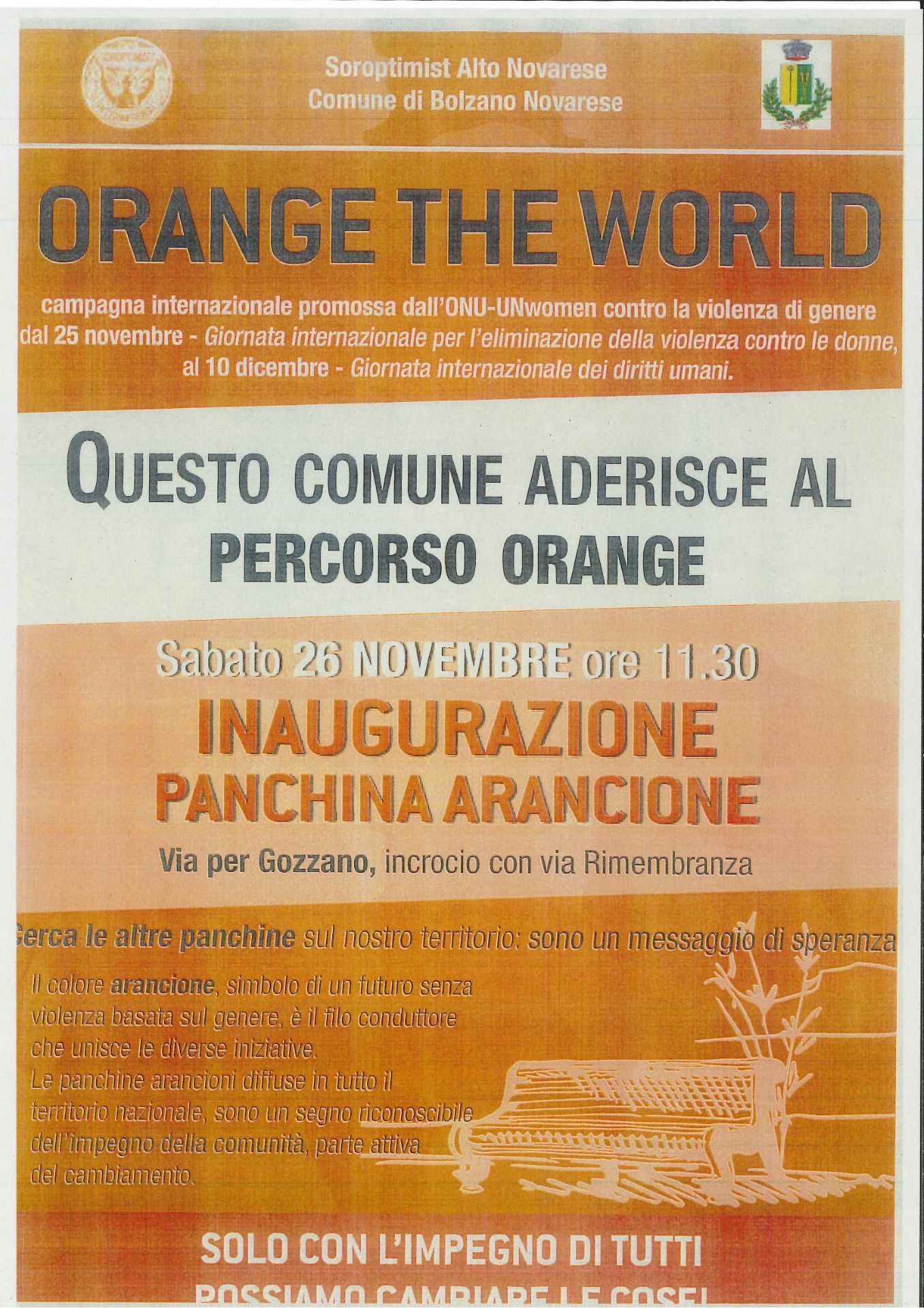 ORANGE DAY - INAUGURAZIONE PANCHINA ARANCIONE - SABATO 26 NOVEMBRE