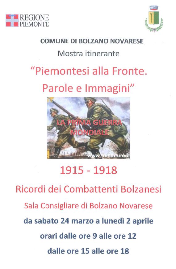 Dal 24 marzo al 2 aprile è visitabile, in sala consiliare, la mostra itinerante realizzata dalla Regione Piemonte "PIEMONTESI ALLA FRONTE - Parole e immagini".